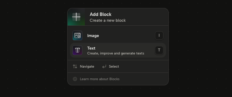 - The output from the Text Block can be used as input for other blocks, such as Image Blocks.